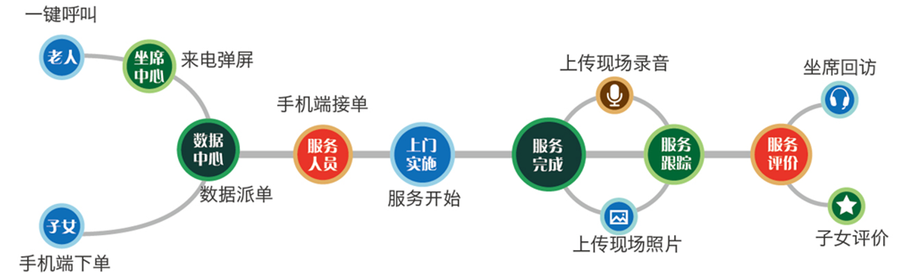 1、居家養(yǎng)老業(yè)務流程,見下圖。